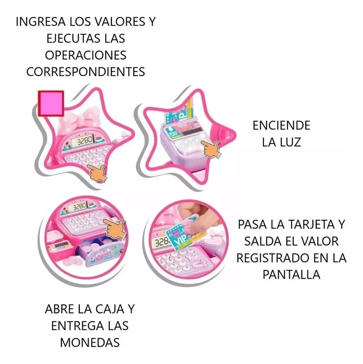 Caja Registradora Juguete Niña Accesorios Luces Sonido Rosa Rosa