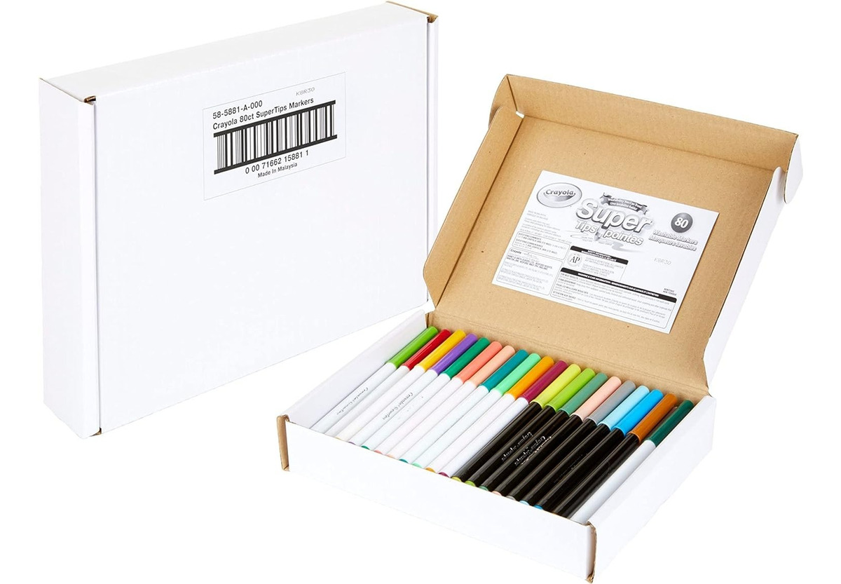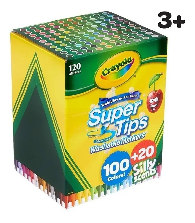 Rotuladores Super Tips y Silly Scents de Crayola: Disfruta de una amplia variedad con los 100 rotuladores lavables Crayola Super Tips y los 20 marcadores Silly Scents, incluyendo repeticiones de colores populares. $ 180.000