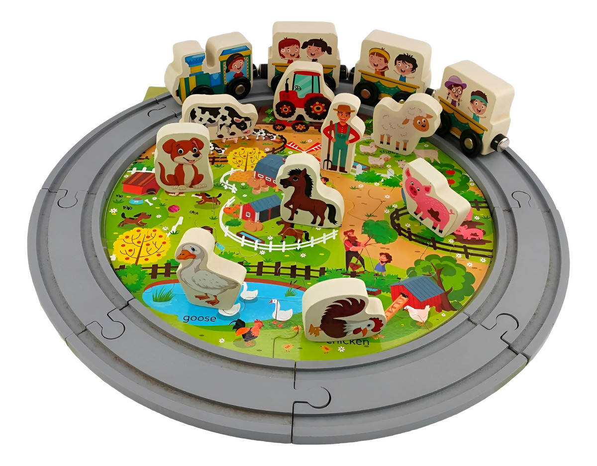 Juego Madera Montesori Rompecabeza Tren Animales Puzzle