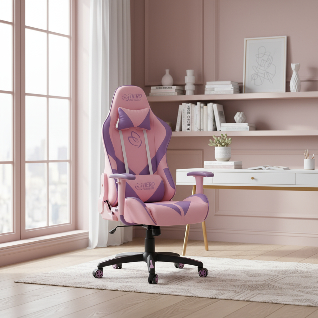 Silla Gamer Gato Rosada Ergonomica Para Mujer Importada Rosa