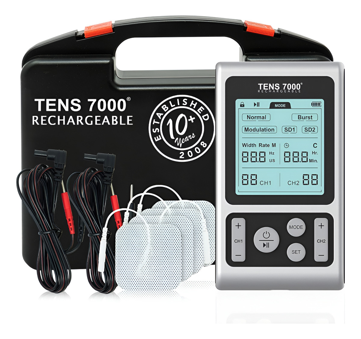 Tens 7000 Unidad Tens Recargable Estimulador Muscular Y Disp Silver