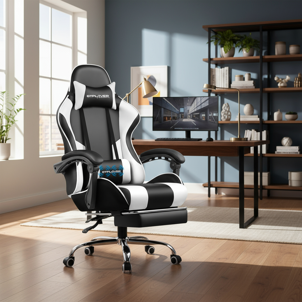 Silla Gaming Ansuit Vibración Masajeadora Apoya Pies Negra Blanco