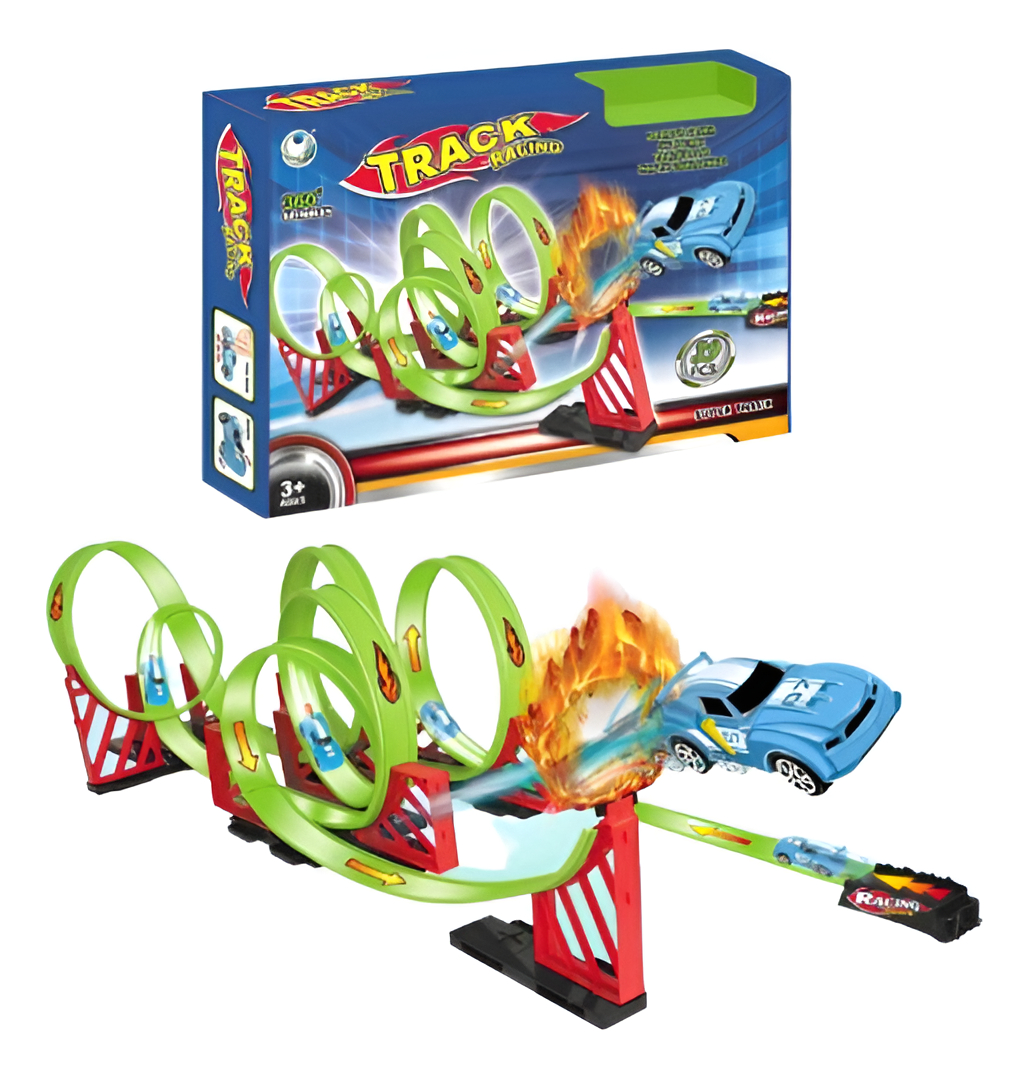 Pista Carrera Auto Carro Track Lanzador Juguete Niño + Carro Azul Acero