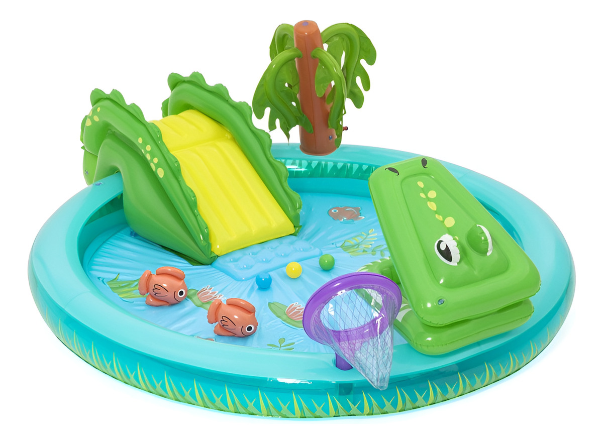 Piscina Inflable Bestway 53166 Con Tobogán Y Juego Cocodrilo Multicolor